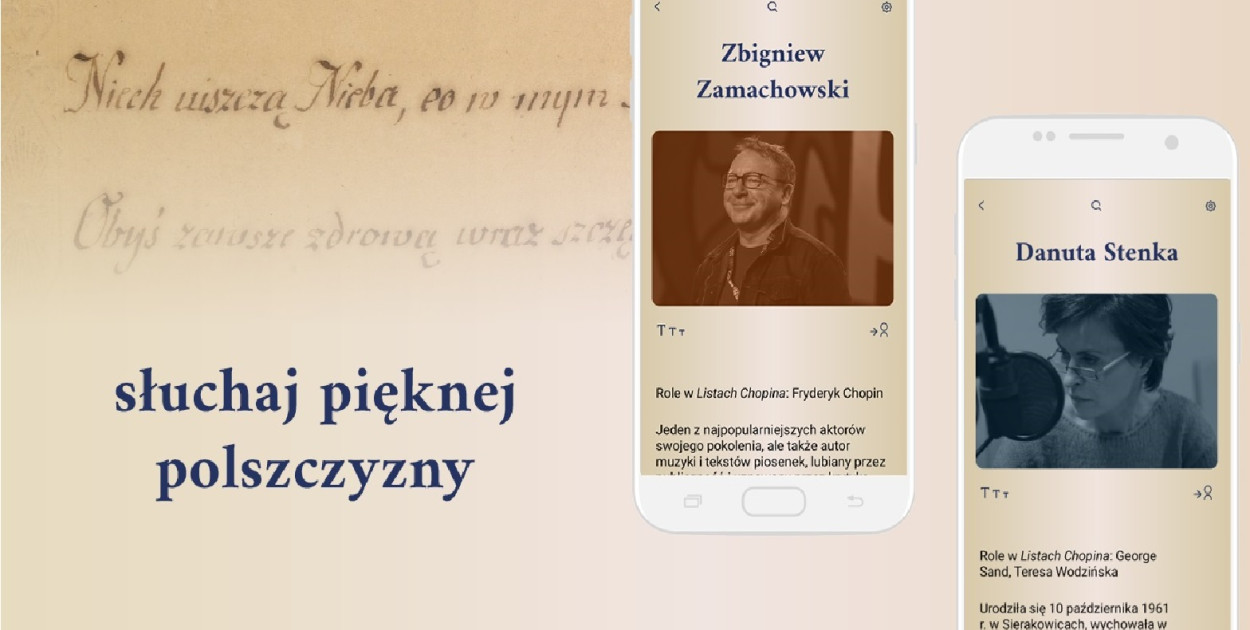 Narodowy Instytut Fryderyka Chopina zaprasza do pobrania bezpłatnej aplikacji „Listy Chopina” – to kompletna korespondencja kompozytora, listy napisane przez artystę i do niego adresowane. Fryderyk Chopin, George Sand, Stefan Witwicki, ks. Antoni Radziwiłł, Józef Elsner, Adam Mickiewicz i inni we wspaniałych kreacjach aktorskich: Zbigniewa Zamachowskiego, Danuty Stenki, Karoliny Gruszki, Jana Englerta, Grażyny Barszczewskiej, Jacka Rozenka, Joanny Szczepkowskiej i Grzegorza Martyny.